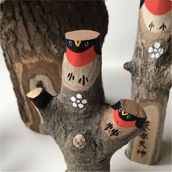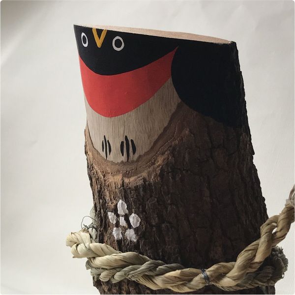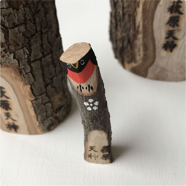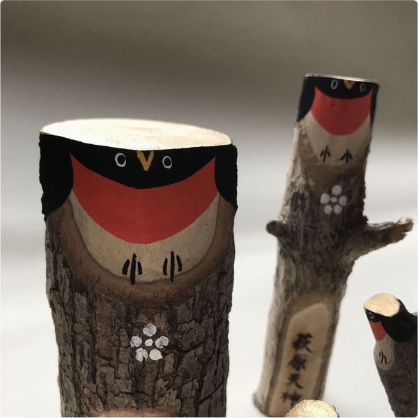 3又もいい感じ。神木に3羽の鷽が止まっているというイメージで作られているんだと思いますが、ついついケルベロスと言ってしまう。シルエットも心なしか、太陽の塔っぽく、いろんな角度から見て楽しめるのも気に入っています。高さ11センチ。