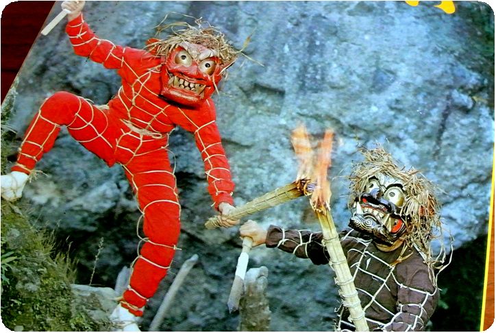 箱の脇に、「天念寺の鬼絵」とあったのでそれを元に検索してみると、正式名称は「修正鬼絵(しゅじょうおにえ)」と言い、1200~1300年ほど前から行われている、国東半島地域独特の宗教儀式なのだそう。