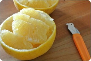 さて、コトリカッター……じゃなく、みかん パックカッターで晩柑を剥いていきます。